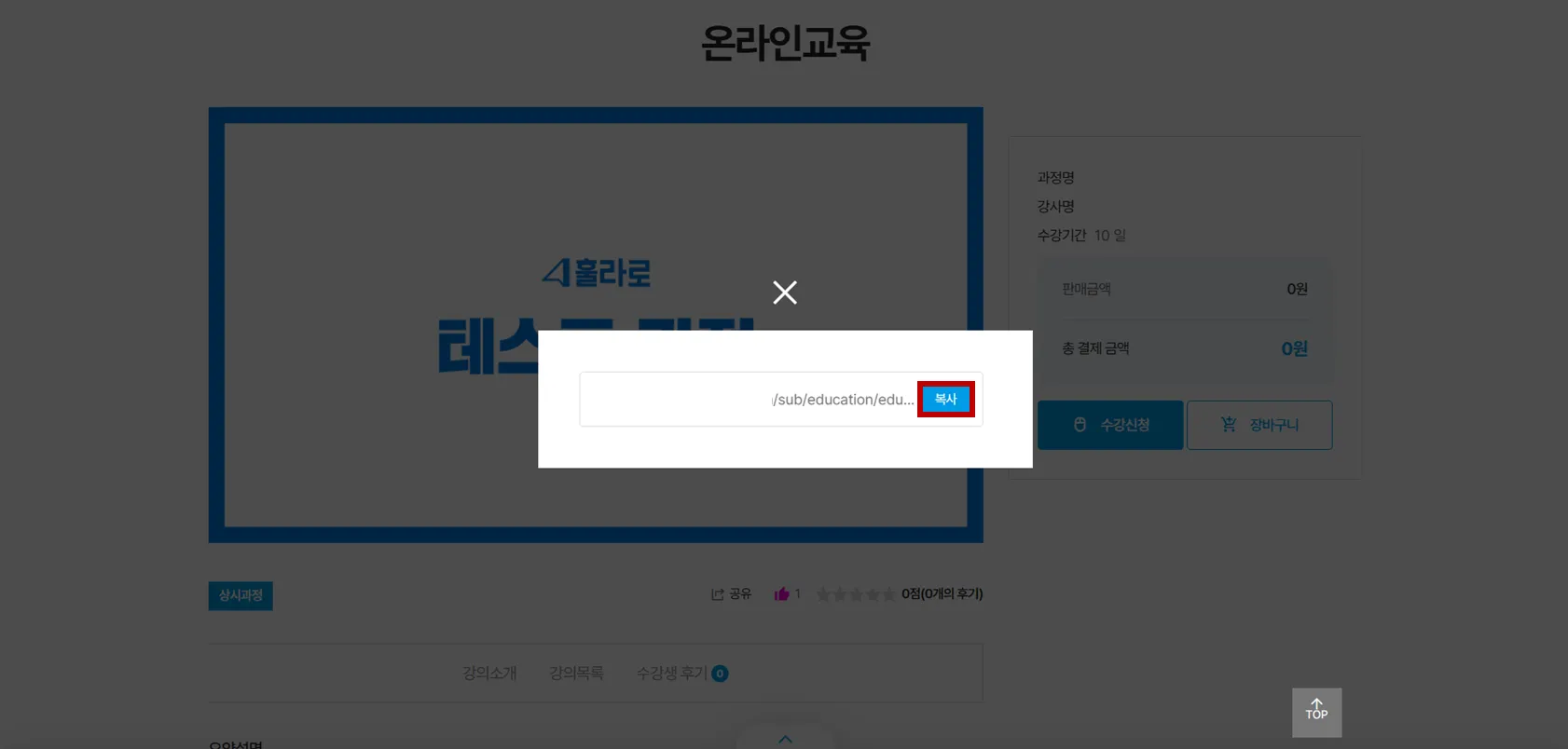 공유 버튼 클릭 시 과정 링크가 자동으로 복사되어 다른 사람과 쉽게 공유할 수 있습니다.