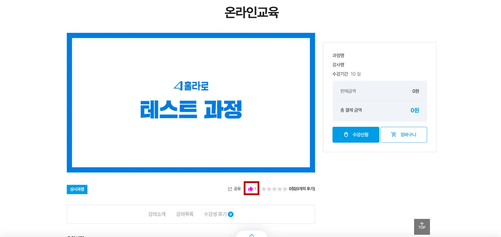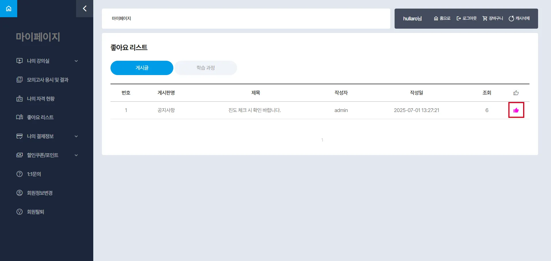 학습자가 게시판, 과정에 좋아요를 남길 수 있습니다.